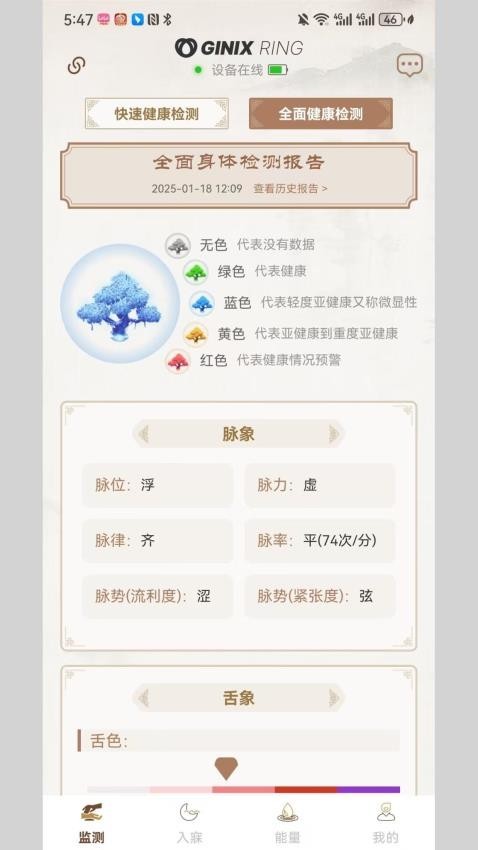 3、通过健康监测可以查看脉象变化,根据监测的脉象对健康进行分析评估。