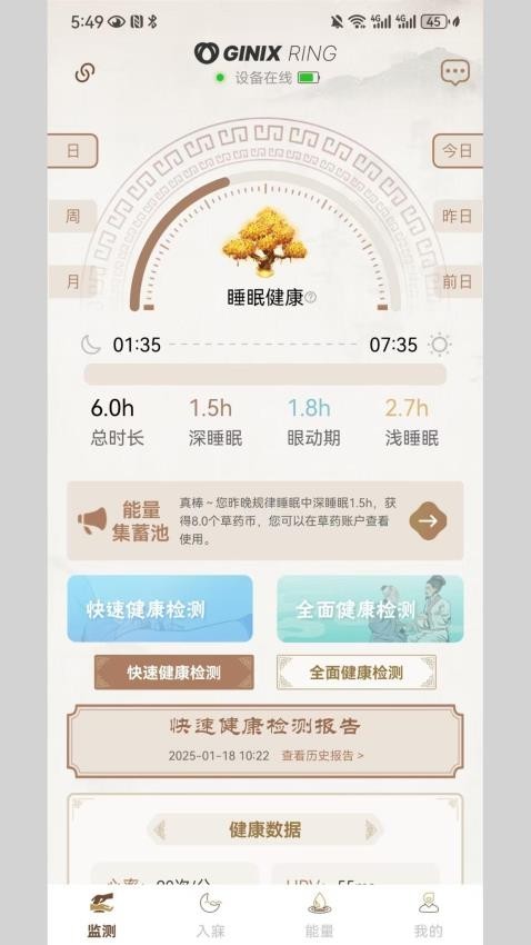 4、睡眠记录:能够使用智能戒指对每日的睡眠进行监测,随时了解每天的睡眠健康情况。