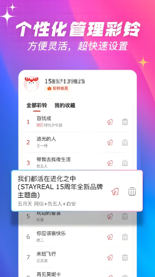 5、设为彩铃:具备手机彩铃设置功能,支持用户挑选优质的铃声设为手机来电铃声。