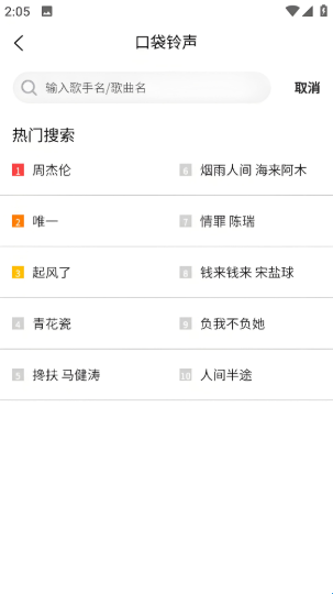 3、搜索铃声:输入歌手或者歌曲名称,为用户搜索到想要了解的铃声资源进行挑选。