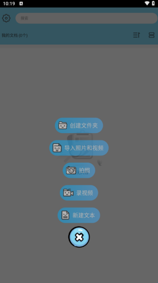 3、来到软件首页可使用创建文件夹、导入图片、拍照、录视频等功能。