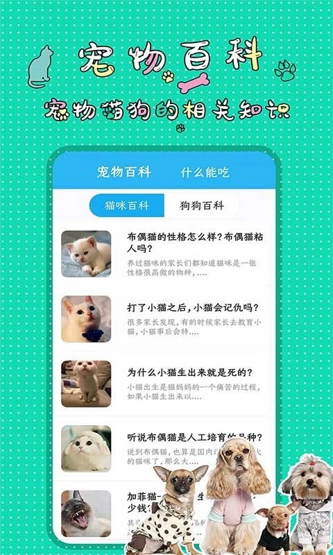 人猫人狗翻译交流器也是专为动物爱好者和可爱的小动物们设计的一款萌宠app,具有人猫翻译交流、人狗翻译交流、猫狗声音播放、宠物百科小知识等功能,努力为您和小动物们带来快乐!