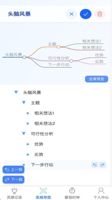 6、思维导图:需要将所有的思维信息按照标题整理出来,在思维导图中查看整理的所有信息。