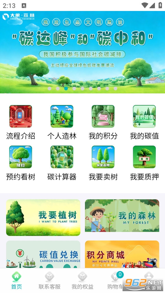 《大象森林》是一款能够购买树木树种,了解植树相关事宜的造林公益软件,用户可以在这款软件中购买树种,了解造林土地资格并准备,学习种树相关的知识,如果用户在现实中将树种好了养成了,也可以在软件中卖树,软件还可以计算个人的碳排放,了解你的环保指数,弘扬植树造林的环保精神。