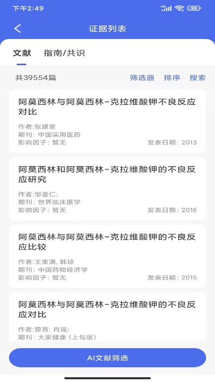 相互影响:app提供药品相互作用数据信息和论文参考文献。