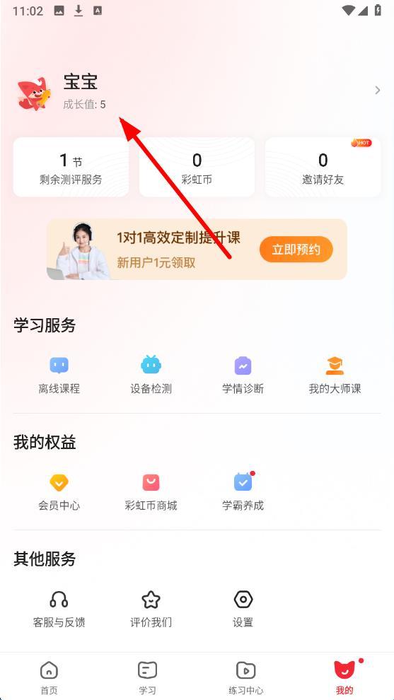 1、打开掌门1对1应用,点击底部导航栏中的我的选项,进入个人页面。