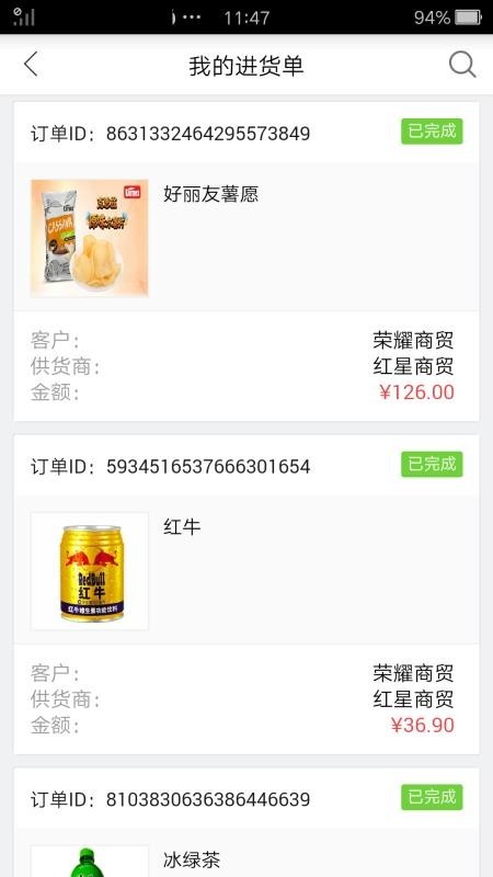 4、对账单:支持使用软件进行对账,方便用户及时查看每一次的订货账单,查看订货情况。