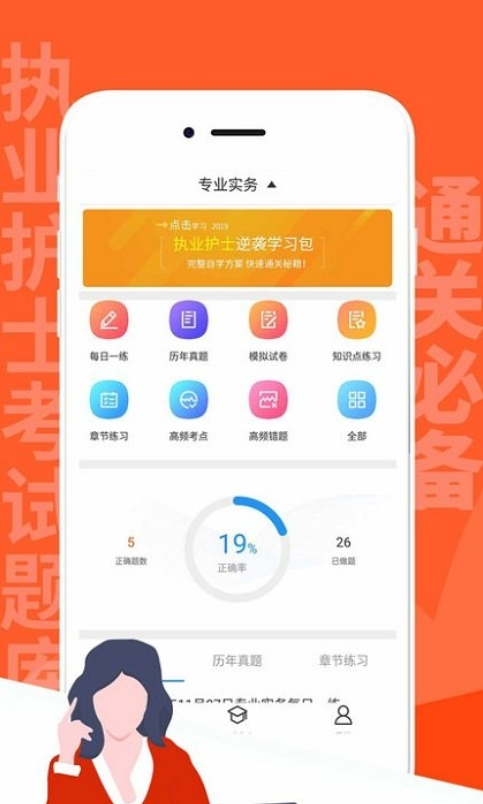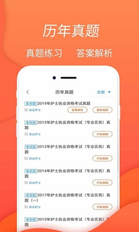 拥有护士执业资格考试历年真题.每日一练.模拟题库.知识点练习等试题,配备答案和解析,另有高频考点.错题集.论文范文.视频解题等,具有丰富的做题功能,随时随地可提分。