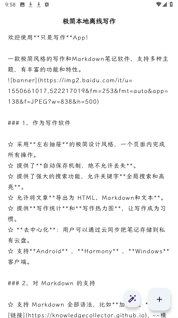 只是写作是一款用于手机写作的软件,提供小说、散文、剧本等垂直领域模板,支持自定义章节结构与角色设定,助力快速搭建创作框架。支持跨设备登录,实时同步创作进度,并可将作品导出为Word、PDF、Markdown等格式,适配多样化场景。无论是日常记录、灵感捕捉,还是长文创作,用户均可通过无广告、无弹窗的纯净环境专注输出,提升写作效率与作品质量。