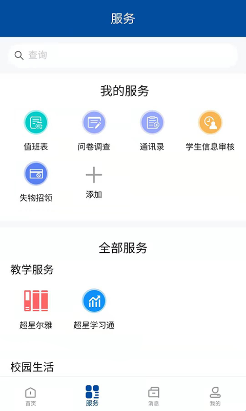 3、校园服务:集成一卡通服务、图书馆借阅、成绩查询等常用功能,满足用户在校期间的日常需求。