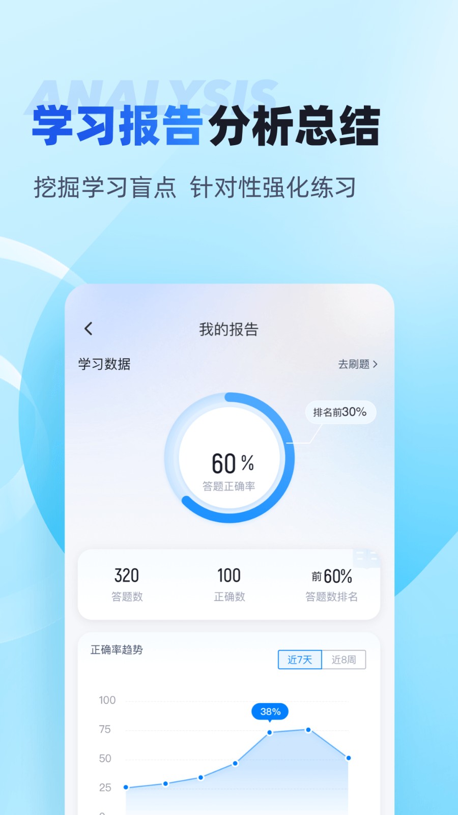 2、智能分析弱点:通过对用户的答题情况进行智能分析,准确找出知识盲区,提供针对性的复习建议。