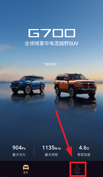 1、下载安装并打开捷途纵横app,进入后点击我的。