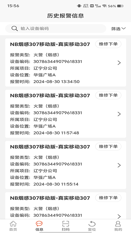 2、维修维保:对各种故障设备以及异常设备进行维修维保下单处理。