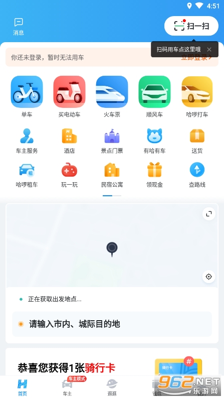 -哈啰单车免押金,扫码用车极速开锁;