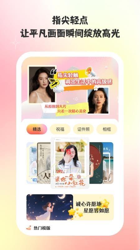 巧甜相机平台可以支持多种多样的图片美化操作,用户可以通过多种形式轻松美化图片,无论是想要制作出什么照片都可以全面满足;更多具有创意的图片美化模板带来更多的创作灵感,让更多普通的照片变得更加唯美,绽放出高光;快速重塑整个照片的画面,收获更多美好的照片。