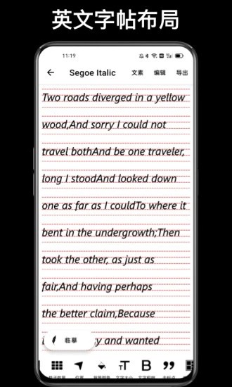 1、英文练习:提供了英文版本的字帖内容,用户使用英文字帖可以随时练习书写英文内容。