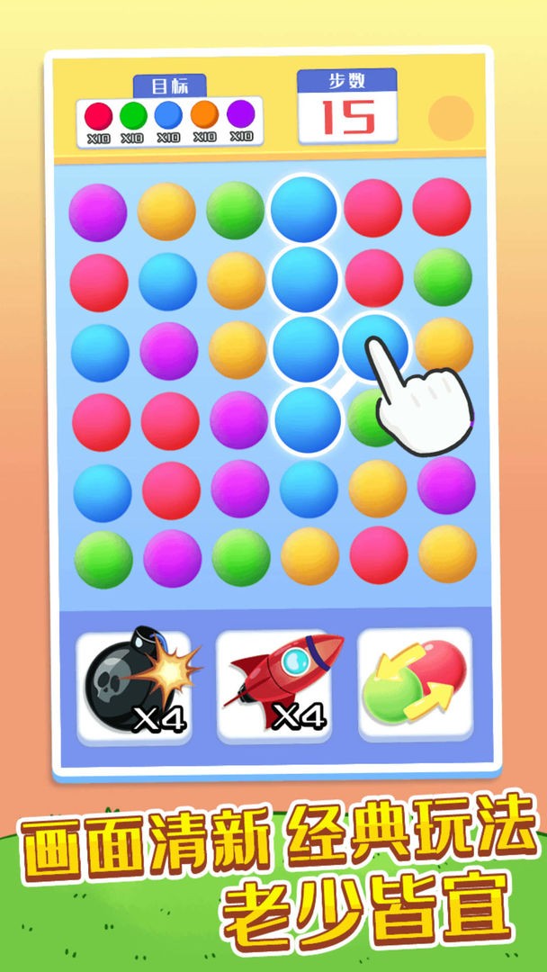 开心连球球是一个十分特别的消除类游戏,易于控制,简单地点击块并在相邻的相同颜色的块上滑动!注意你的动作,玩家需要在跑完之前达到目标!不一样的消除益智游戏带给你.连接并消除相同颜色的球球!连线越长消除越爽,分数也越高!游戏简单易上手,点击并拖动手指来连接相邻的同色球球。记得在规定步数内完成目标哦!使用道具来帮你度过难关,轻松霸榜!