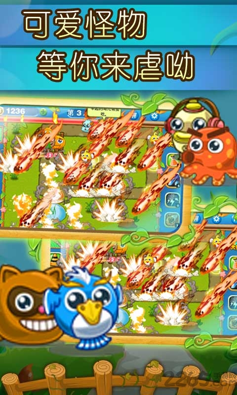 一群贪吃的小怪兽正准备进入你家后院菜园中偷吃蔬菜!现在是考验你勇气和智慧的时刻了,拿起手中的武器保卫菜园,配合种类丰富的道具,巧妙布局,对贪吃的小怪兽们进行致命一击!