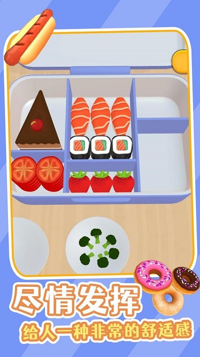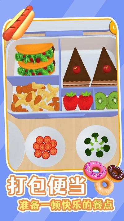 饭盒准备就绪游戏是一款非常好玩的饭盒打包游戏,游戏中玩家要将食物完美的打包收纳进行饭盒中,你眼前的饭盒已经准备就绪了,在这里玩家们一定要好好的规划每个食物归放的位置,这里有着非常多的饭盒类型,玩起来十分的不错,感兴趣的朋友们快来下载体验吧!