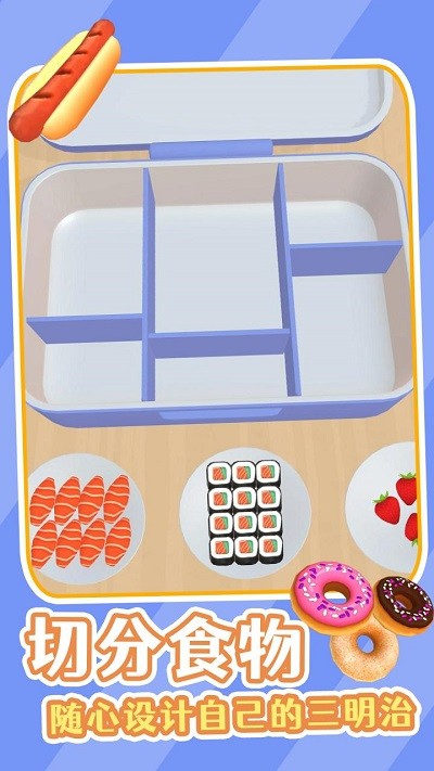 这是一个ASMR打包游戏,你可以在游戏中设计自己的三明治、布置小吃,甚至还能切分食物。如果你喜欢整理和填充冰箱,那么你的打包技能还可以再上一个台阶。