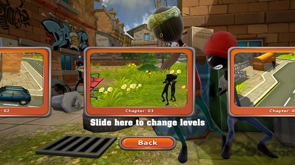 游戏的地图很大,你可以随意探索,非常自由,是摧毁还是保护,由你选择,你将扮演一位神出鬼没的小黑人,你可以随意殴打路人,摧毁车辆,飞檐走壁,开直升机,没人能阻止你,经典的火柴人风格,加上了自由的操作模式,玩家可以根据提示完成任务。