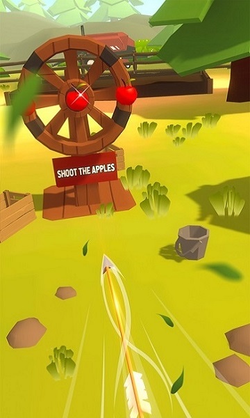 ·需要根据距离来估算需要抬起多高才能正好命中远端的苹果,通过射击苹果来解锁不同的弩
