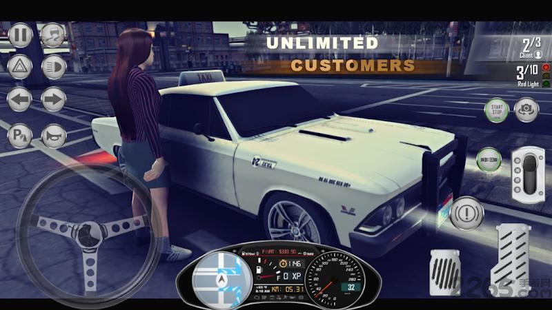 1、玩家将在这以第一人称视角驾驶出租车,完成各种送客任务。