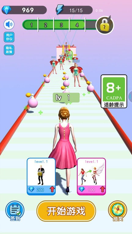 我要当模特3d手机版是一款在游戏中收集服装来走秀的跑酷单创光游戏,能够控制角色进行跑酷冒险,收集各种服装来打造时尚造型,游戏的玩法非常好玩精彩,还需要躲避障碍物,简约风格游戏画面,无限趣味性,喜欢玩就来试试吧!