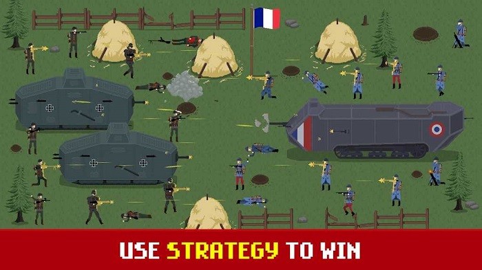 1917战壕战重置版虫虫助手无限金币内置MOD菜单破解版中采用了像素沙盒战争玩法,纯正的军事题材,背景为第一次世界大战时期,玩家需要指挥军队来参与大混战,武器装备多多,收集有力的武器来参与紧张残酷的战争!