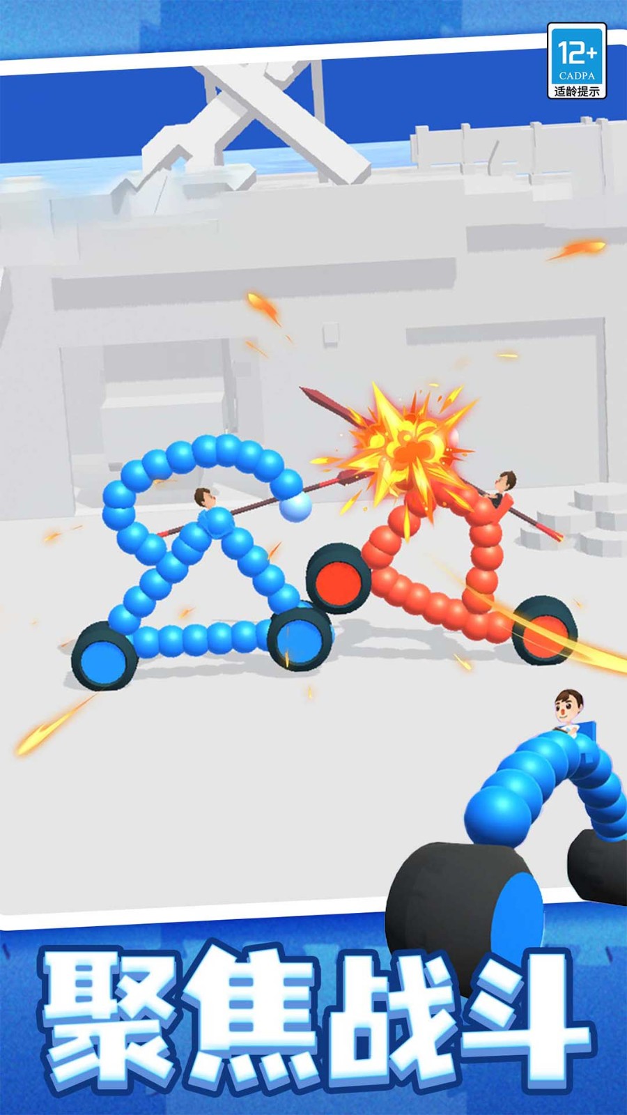 2、战斗节奏轻快紧张,战车碰撞与武器攻击反馈直接,结合升级成长带来持续的正向激励体验。