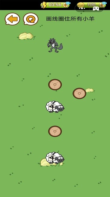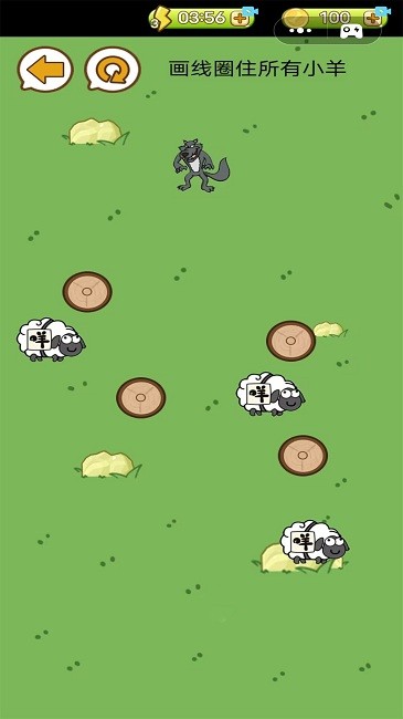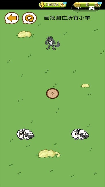 这是一个休闲益智的饿狼围羊小游戏,在游戏中你只需要触及屏幕,画出一条线来制作你的包围圈,顺利将小羊围起来并没有跑掉即可通关,快来挑战吧!