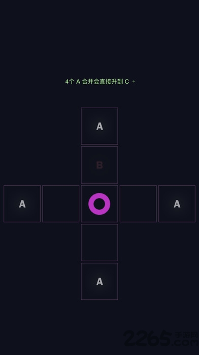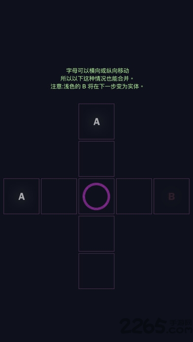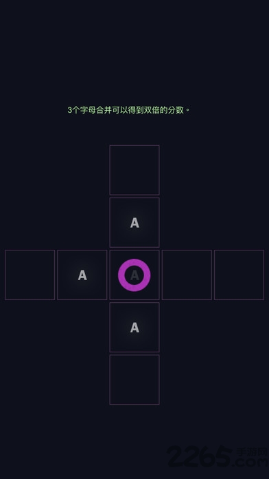 3.只要在空的格子里点击,如果它的上下左右方向上有相同的字母,就能聚过来合体并升级。