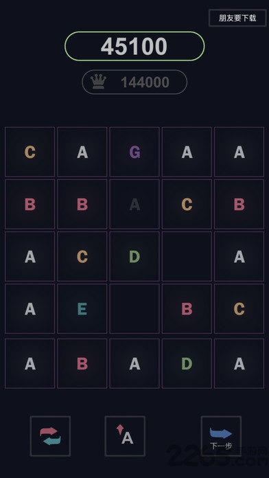 合他个ABC安卓版是一款有趣的休闲类游戏,游戏采用合成和消除的玩法,你需要将同样的字母合成其他的字母,合成到G即可消除,快来挑战一下自己的高分吧!