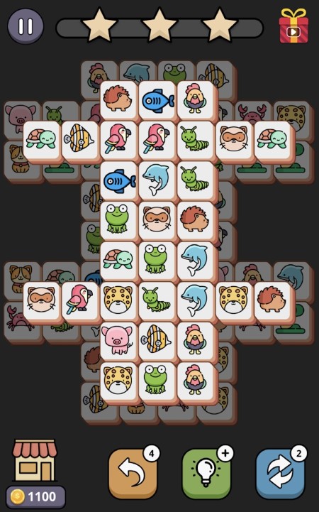 当您可以配对到连续三个相同动物的方块之后,动物方块就会消失,为您腾出空间,让您可以放下更多方块。