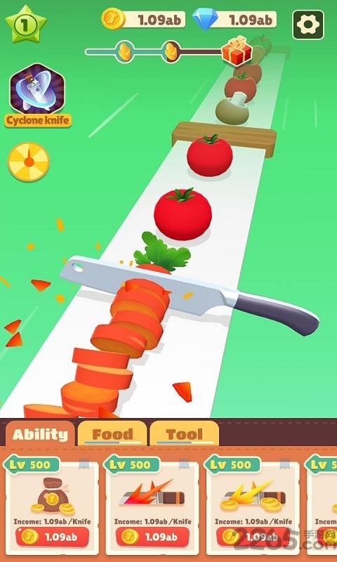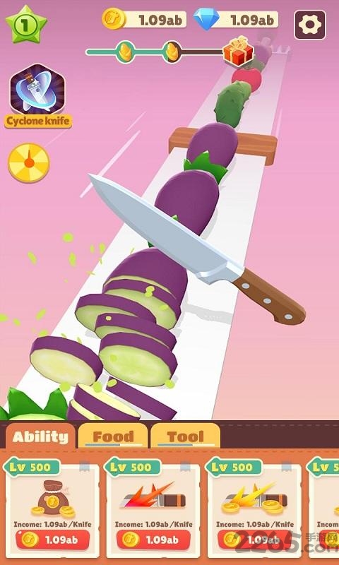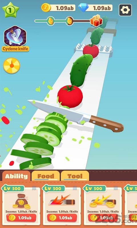 在这里你只需要点击屏幕切割各种蔬菜和水果,无需太多操作,就这么简单。