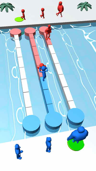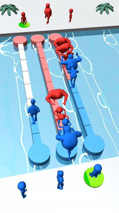 红蓝推手游戏是极具趣味性的闯关游戏,玩家可以看到里面的人物角色有两种颜色,不同的颜色代表不同的阵营,大家要在水桥上进行对决,将对方推入水中就可以获得胜利,玩法比较简单易上手,喜欢的小伙伴快来下载试试吧。
