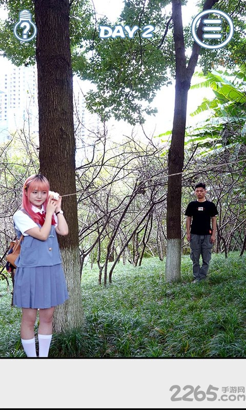 第2关:从左下角拿到红色杯子,树后面获得绳子,切换至右侧场景获得绳子,将杯子给后面的男主,线给予右侧的男主。