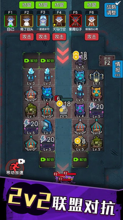 1.解锁更多格子才能更好的抵御和对敌人发动进攻,做到攻守兼备