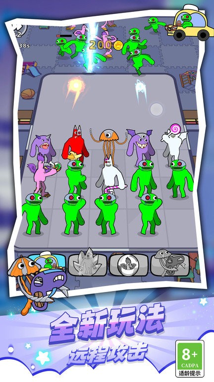 玩家在游戏中需要根据不同的策略,消灭各种怪物敌人,打败所有对手,能够将两个不同的怪物进行合成,成为更强大的怪物,通关后还能解锁隐藏关卡哦。