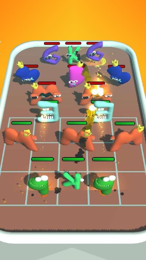 4、引入阶段性首领战机制,在关卡终点将遭遇造型夸张的巨型字母怪物,需要玩家合理调配已合并的高阶字母单位,运用属性克制策略取胜。