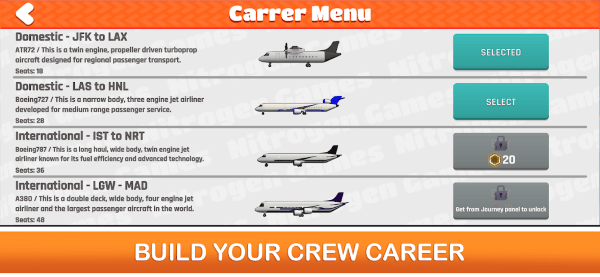 升级您的设备:使用您的收入解锁更好的航班菜单和飞机,提升自我。