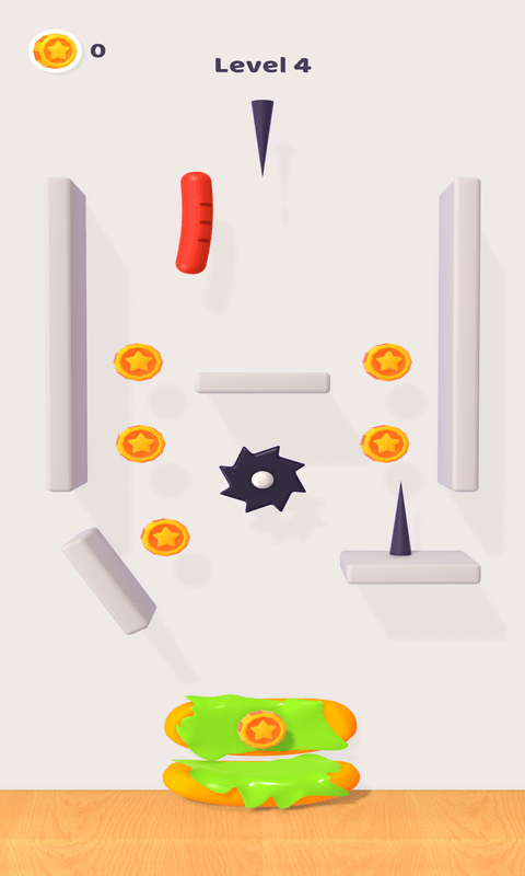 摇摆香肠是一个简单的闯关冒险游戏体验,如果您设法通过避免并远离伤害香肠的障碍物将香肠放在三明治面包上,请享用您的热狗!