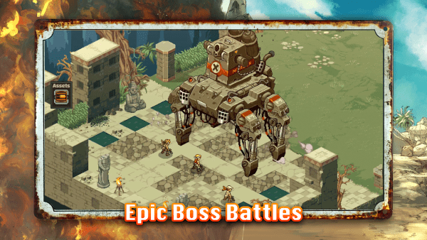 解锁并升级经典《合金弹头》角色。为他们配备独特技能和自定义装备。