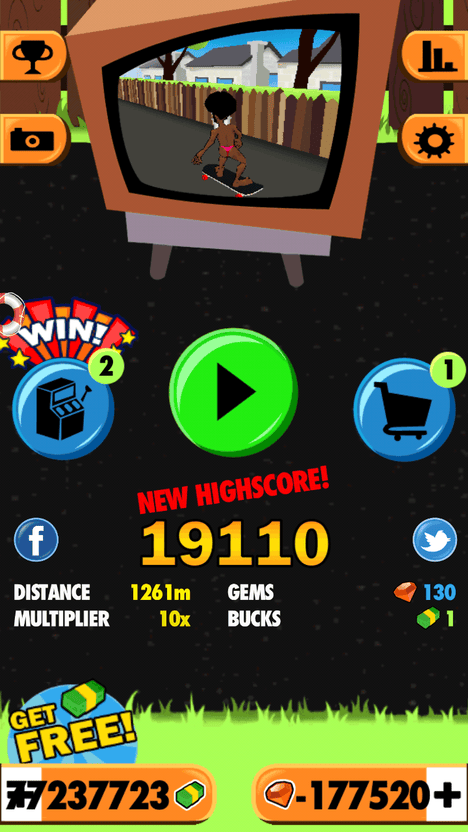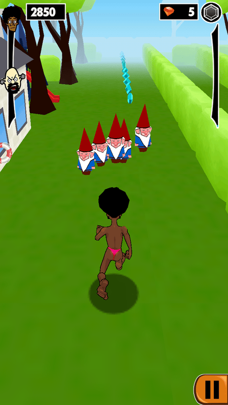 赤裸狂奔是一款十分好玩的跑酷游戏,玩家需要操作一名裸露的猥琐男人来逃避硬汉追打,有点像神庙那款经典的游戏,不过这种题材更能让人捧腹。通过不断的跳跃以及绕过障碍物,收集宝石和金钱,更有类似卡车等庞大的物件等你来跨越,8种不同游戏角色等你来挑战。