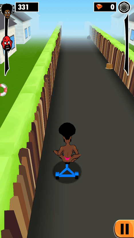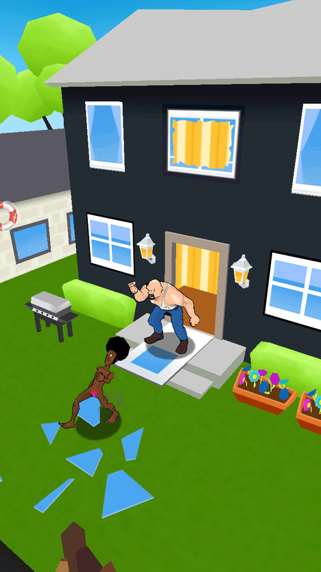 另外例如垃圾桶、香蕉皮、睡觉的胖子等障碍物,踩到后并不会立刻死亡,只是会影响奔跑的速度和方向,同时身后追赶的丈夫也会趁机靠近,到一定距离就会把玩家扑到在地,后果你懂的。