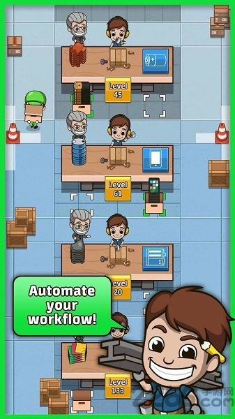 在这里你将成为这家工厂的老板开始赚取的旅程,建立健全的工厂格局,招募更有才华的主管,解锁各式各样新颖的工作站,利用有限的储备现金和广告活动来加强效益建设,促使工厂效率达到最大化,最终带你走向致富道路。