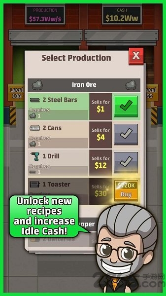 --可以自动赚钱的养成游戏,超过90种产品可生产,包括家具,智能手机等;