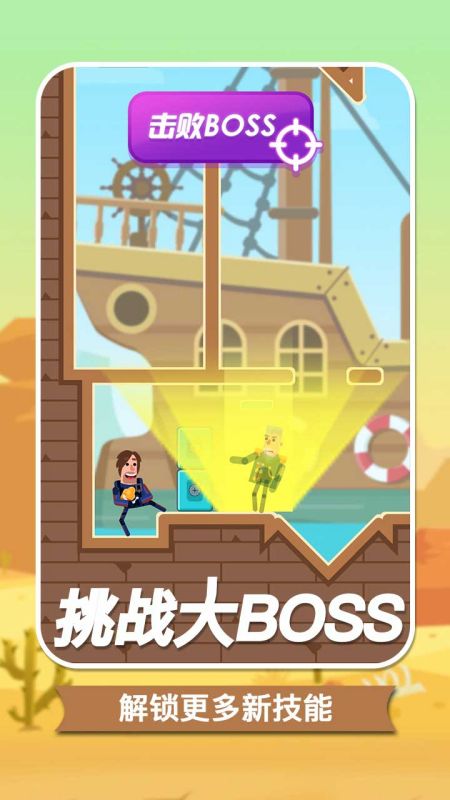 2.创新地运用物理原理。 玩家使用子弹完成杀戮任务。请注意,子弹击中弹射物时会反弹。