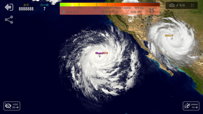 飓风大作战修改版上线,这是一个实时多人联机游戏,在无网络的环境下,会进入离线个人生存模式,开局只是一团不起眼的云,你的目标是成长为超级飓风。在这过程中你要不断吸取地球上的能量,还要面临来自世界各地的强大竞争者,他们无时无刻想要吞食你,你准备好迎接挑战了吗?开始吧!