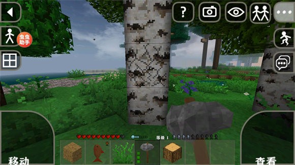 4、采集完足够的木头和树叶后,我们得去找些吃的,南瓜和鸟蛋是我们第一天主要的食物来源。